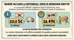 In un periodo in cui ogni euro conta, vogliamo essere ancora più vicini a voi. Per questo, da oggi, abbiamo ridotto le spese di spedizione da 8€ a 5€ e abbassato il minimo d’ordine per la spedizione gratuita...