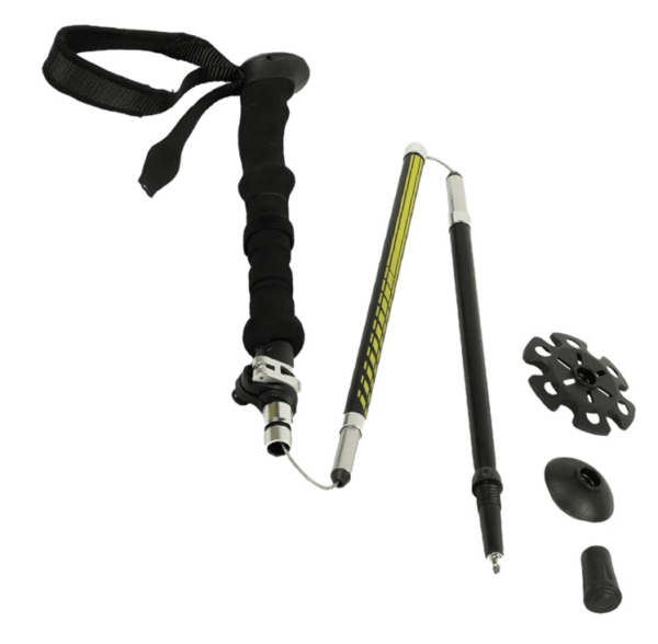 Bastoncino realizzato in lega di alluminio Ergal 7075 con struttura pieghevole che lo rende ideale per una vasta gamma di attività in montagna, incluso il trail running, anche grazie alla sua straordinaria leggerezza (soli 568g la coppia). Il cavetto di acciaio interno, rivestito in materiale plastico, consente di montare e smontare il bastoncino con facilità e rapidità in ogni situazione. La sezione superiore è dotata di un comodo sistema di bloccaggio con clip di alluminio che consente una rapida e agevole regolazione della lunghezza, con un range h. 115/135cm. Dotato di manopola ergonomica 4 stagioni in eva-grip con lacciolo di facile e rapida regolazione e rondelle intercambiabili per neve e vari tipi di terreno. Lunghezza ripiegato 37cm.