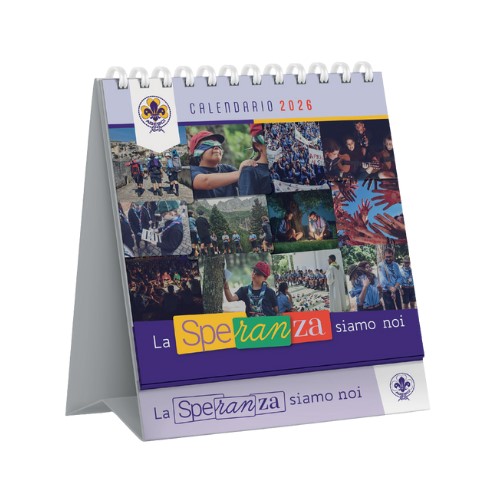 La speranza siamo noi Un calendario fotografico che ripercorre momenti significativi in cui l’Associazione si è fatta «segno tangibile di speranza», possibilità concreta di lasciare il mondo un po’ migliore. Oltre ai santi del giorno e alle festività laiche, cristiane, ebraiche e islamiche, nel datario sono riportati eventi e ricorrenze scout nazionali e internazionali. Presente anche lo spazio relativo al mese successivo. Allestimento: a spirale 15×15 cm datario semplificato
