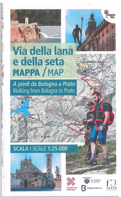La mappa escursionistica della Via della Lana e della Seta è lo strumento essenziale per percorrere il cammino in sicurezza e nel modo giusto. La cartoguida è in scala 1:25.000 e al suo interno sono riportati i dislivelli, le distanze, i punti di interesse e tutte le informazioni necessarie per non avere alcun dubbio sul percorso da seguire. Con la mappa avrete anche cartoguida in italiano ed inglese, con piccole descrizioni ed approfondimenti escursionistici, informazioni su accoglienza, dislivelli e altre brevi descrizioni.
