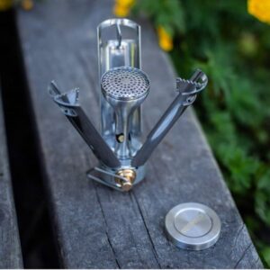 Primus Firestick Stove Ti fornello a gas da campeggio è la soluzione per te se stai pianificando un viaggio e stai cercando un sistema di cottura semplice, leggero e performante! Grazie alla struttura super compatta e pieghevole, durante il trasporto potrai tenerlo nella sua custodia, che entra tranquillamente in una tasca. Questa è la versione in titanio, ancora più leggera e comoda da trasportare! Completo di un accendino piezoelettrico potrai usarlo con qualsiasi cartuccia a gas in ogni situazione! Inoltre, con una potenza di 2500 W, può far bollire un litro d’acqua in tre minuti e mezzo oppure abbassare la fiamma per cuocere a fuoco lento una salsa delicata. La cartuccia del gas non è inclusa.