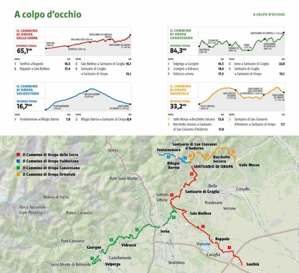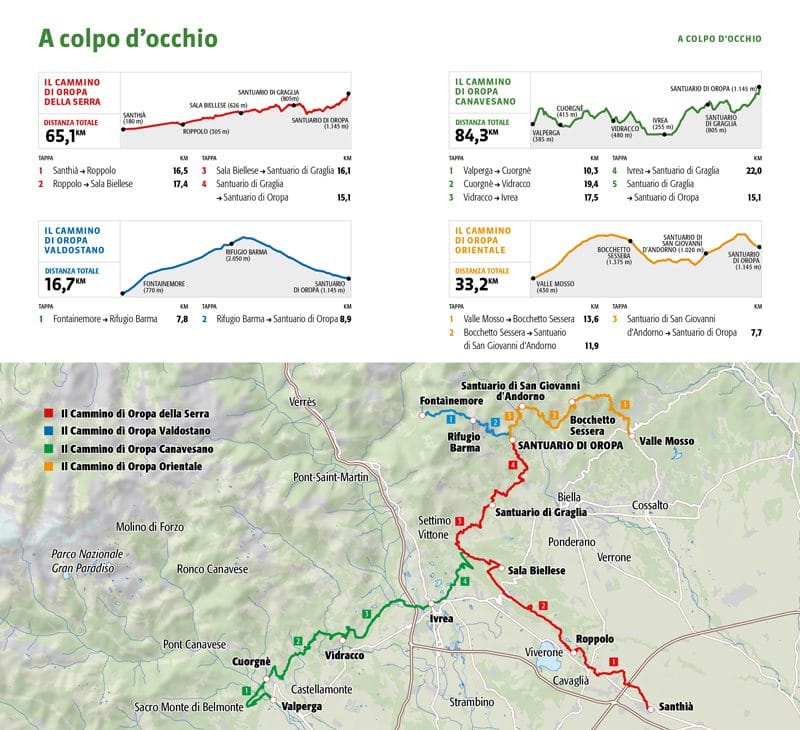 Ma c’è di più, la guida permette di scegliere altri tre itinerari: da Valperga e Ivrea seguendo il Canavese; lungo le tracce dello storico pellegrinaggio notturno di Fontainemore; e da Valle Mosso attraverso i colori e le fioriture dell’Oasi Zegna. Natura e spiritualità guidano al santuario di Oropa, e da qui c’è la possibilità di tre escursioni in giornata per godersi una vacanza o andare alla scoperta della montagna. Con tutte le informazioni utili per mettersi in cammino: le cartine dettagliate, le descrizioni del tracciato, i dislivelli, i luoghi dove dormire e quelli da non perdere.