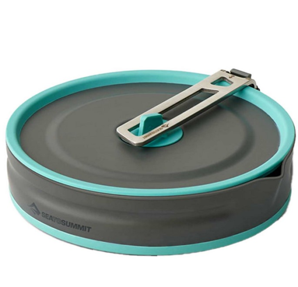 La Frontier UL Collapsible Pouring Pot 2.2L è una padella da campeggio di Sea To Summit. La gamma Frontier è stata progettata per offrire attrezzature dal peso minimo, senza compromettere qualità o funzionalità. Questa pentola ultracompatta e leggera semplifica le modalità di cottura grazie al beccuccio integrato. Il suo design in lega anodizzata e silicone garantisce un ripiegamento compatto per una conservazione efficiente e salvaspazio. Il manico rimovibile Click-Safe si fissa alla pentola per un utilizzo sicuro. Partite all’avventura in tutta spensieratezza con la pentola della gamma Frontier.