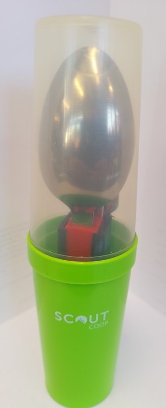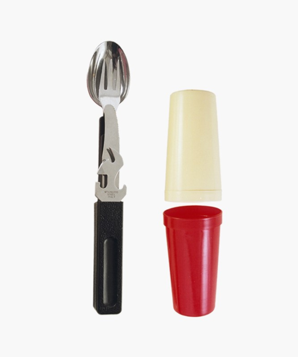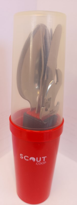 Posate per campo scout con bicchierino. Disponibile in vari colori.