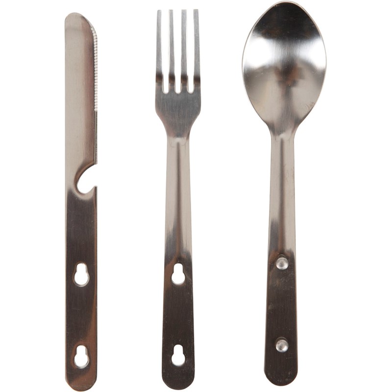 Questa combinazione di coltello, forchetta e cucchiaio ad incastro mantiene le tue posate da campeggio sicure e organizzate, rendendole l’aggiunta perfetta alla tua attrezzatura da cucina per il campeggio