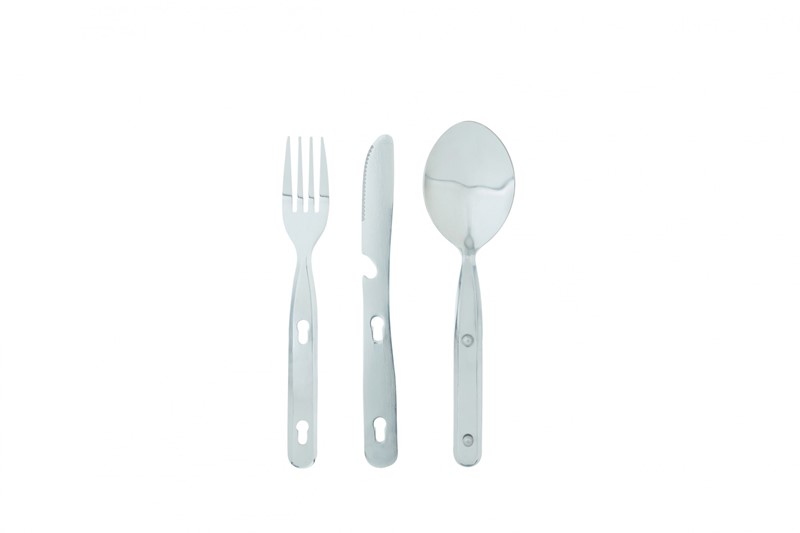 Set di cucchiaio, forchetta, coltello multiuso in acciaio inox.