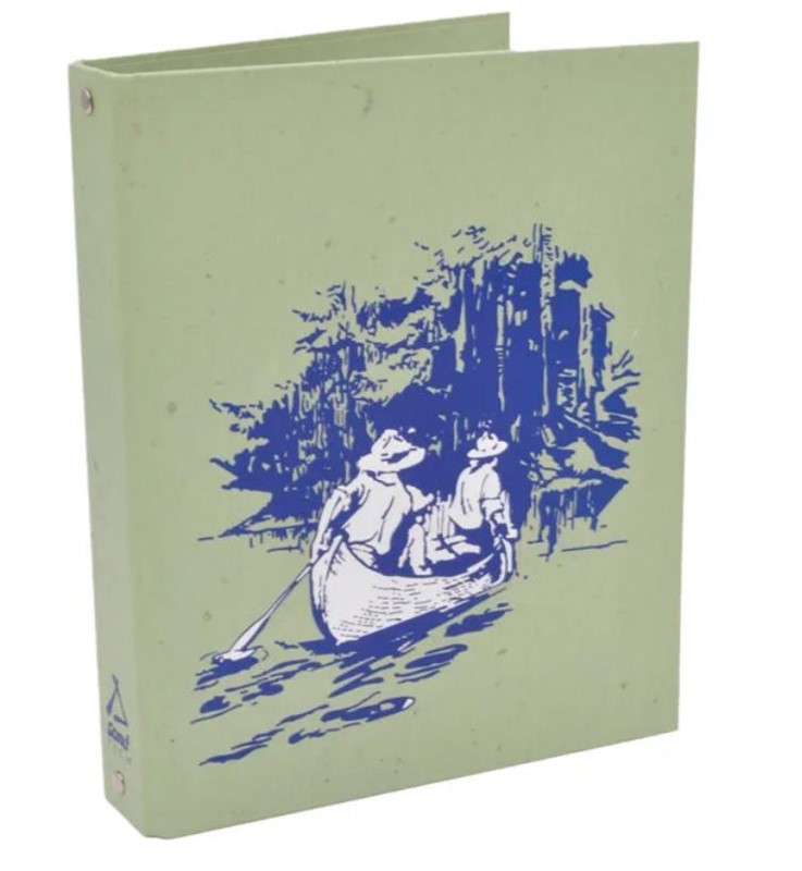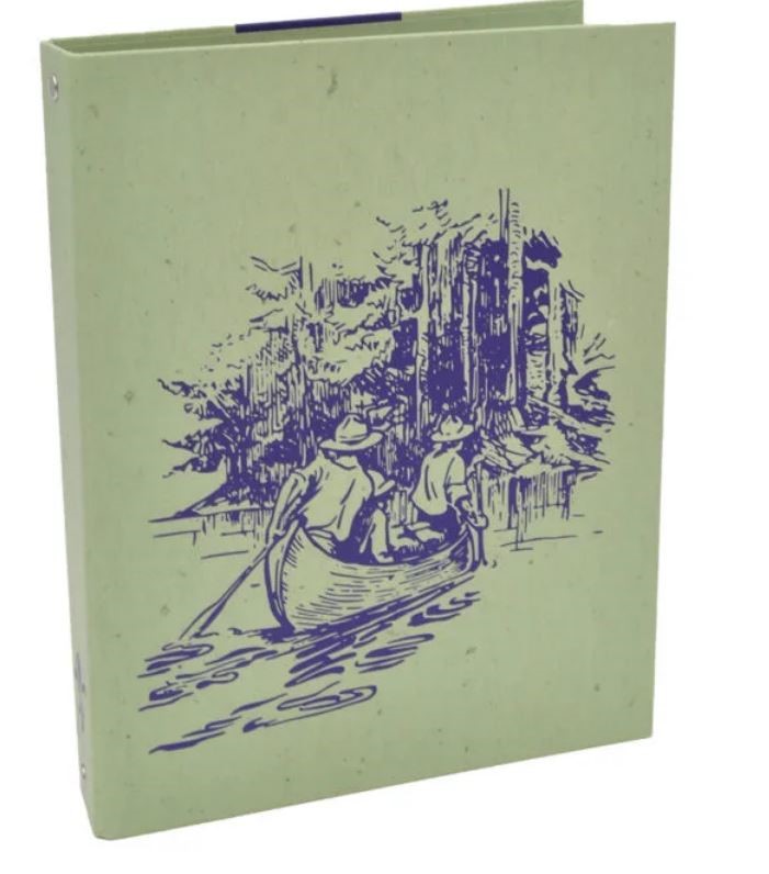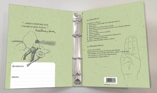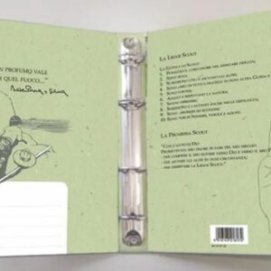 Raccoglitore ad anelli formato aperto cm 37×22 – 4 anelli diam. 30 mm. All’interno Legge e Promessa Scout e in copertina il disegno di scout che guidano una canoa.