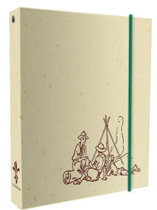 Raccoglitore ad anelli Raccoglitore con elastico e bordo rialzato F.to aperto cm 37×22 – 4 anelli diam. 30 mm. All’interno Legge e Promessa Scout